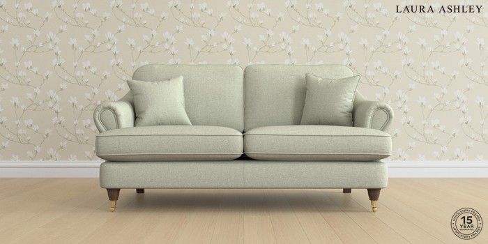 7.0.3 Buy Ambersham by Laura Ashley 3 Seater Small Sofa Anneliese Sage Green Low Brass Castor - Chestnut from the Next UK online shop Click here to use our accessible website