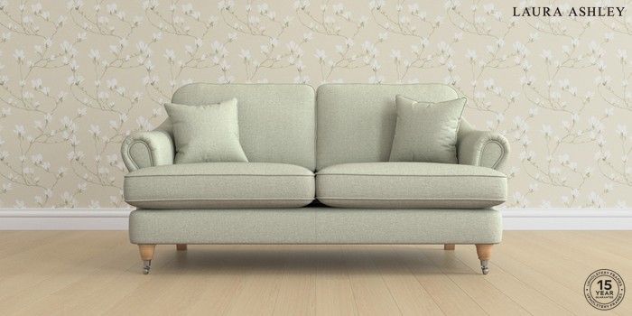 7.0.3 Buy Ambersham by Laura Ashley 3 Seater Small Sofa Anneliese Sage Green Low Chrome Castor - Light Oak from the Next UK online shop Click here to use our accessible website