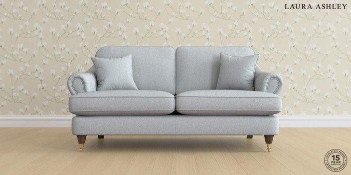7.0.3 Buy Ambersham by Laura Ashley 3 Seater Small Sofa Anneliese Seaspray Blue Low Brass Castor - Chestnut from the Next UK online shop Click here to use our accessible website