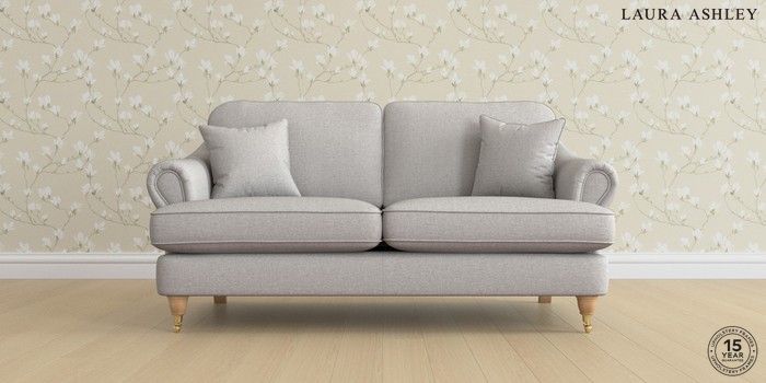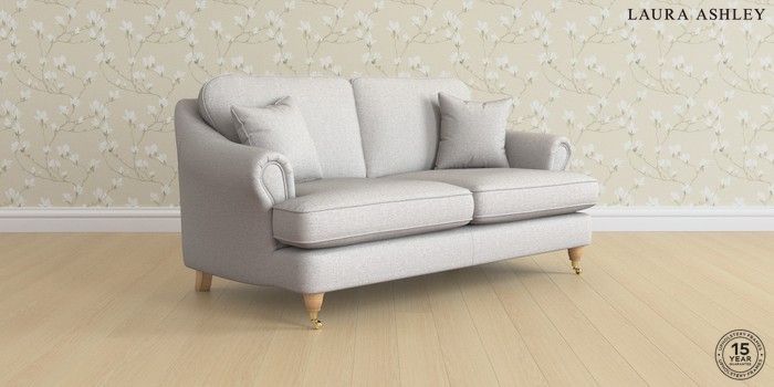 7.0.3 Buy Ambersham by Laura Ashley 3 Seater Small Sofa Anneliese Steel Grey Low Brass Castor - Light Oak from the Next UK online shop Click here to use our accessible website