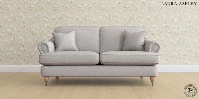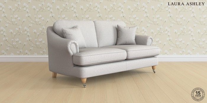 7.0.3 Buy Ambersham by Laura Ashley 3 Seater Small Sofa Anneliese Steel Grey Low Chrome Castor - Light Oak from the Next UK online shop Click here to use our accessible website
