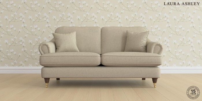 7.0.3 Buy Ambersham by Laura Ashley 3 Seater Small Sofa Bainton Natural Low Brass Castor - Chestnut from the Next UK online shop Click here to use our accessible website