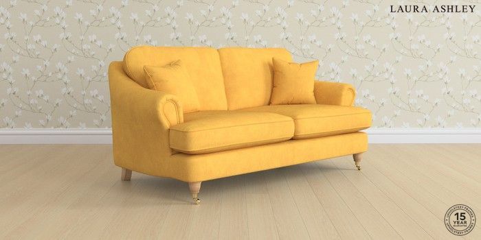 7.0.3 Buy Ambersham by Laura Ashley 3 Seater Small Sofa Bainton Ochre Yellow Low Brass Castor - Light Oak from the Next UK online shop Click here to use our accessible website