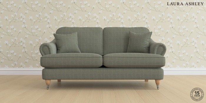 7.0.3 Buy Ambersham by Laura Ashley 3 Seater Small Sofa Birchgrove Check Olive Green Low Chrome Castor - Light Oak from the Next UK online shop Click here to use our accessible website