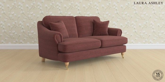 7.0.3 Buy Ambersham by Laura Ashley 3 Seater Small Sofa Edwin Chenille Burgundy Red Low Brass Castor - Light Oak from the Next UK online shop Click here to use our accessible website