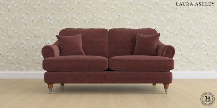 7.0.3 Buy Ambersham by Laura Ashley 3 Seater Small Sofa Edwin Chenille Burgundy Red Low Chrome Castor - Teak from the Next UK online shop Click here to use our accessible website