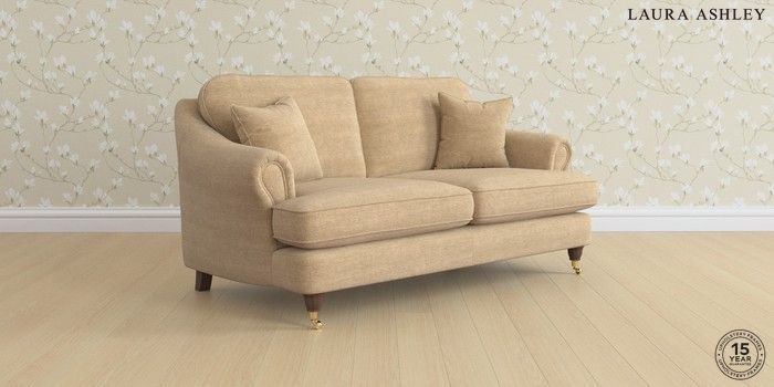 7.0.3 Buy Ambersham by Laura Ashley 3 Seater Small Sofa Edwin Chenille Gold Natural Low Brass Castor - Chestnut from the Next UK online shop Click here to use our accessible website