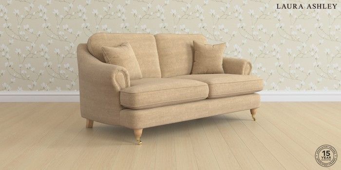 7.0.3 Buy Ambersham by Laura Ashley 3 Seater Small Sofa Edwin Chenille Gold Natural Low Brass Castor - Light Oak from the Next UK online shop Click here to use our accessible website