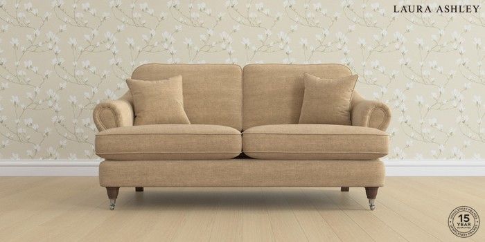 7.0.3 Buy Ambersham by Laura Ashley 3 Seater Small Sofa Edwin Chenille Gold Natural Low Chrome Castor - Chestnut from the Next UK online shop Click here to use our accessible website