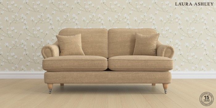 7.0.3 Buy Ambersham by Laura Ashley 3 Seater Small Sofa Edwin Chenille Gold Natural Low Chrome Castor - Light Oak from the Next UK online shop Click here to use our accessible website