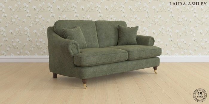 7.0.3 Buy Ambersham by Laura Ashley 3 Seater Small Sofa Edwin Chenille Hedgerow Green Low Brass Castor - Chestnut from the Next UK online shop Click here to use our accessible website