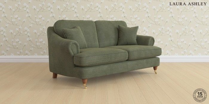 7.0.3 Buy Ambersham by Laura Ashley 3 Seater Small Sofa Edwin Chenille Hedgerow Green Low Brass Castor - Teak from the Next UK online shop Click here to use our accessible website