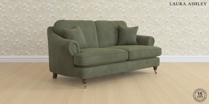 7.0.3 Buy Ambersham by Laura Ashley 3 Seater Small Sofa Edwin Chenille Hedgerow Green Low Chrome Castor - Chestnut from the Next UK online shop Click here to use our accessible website