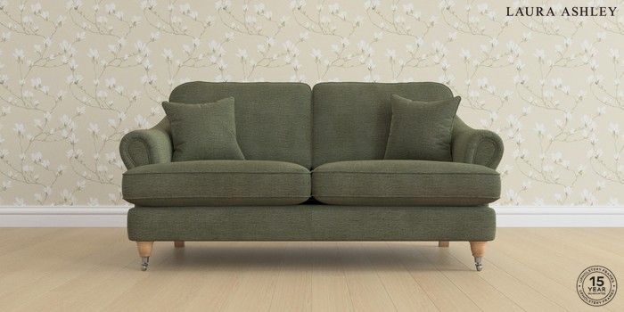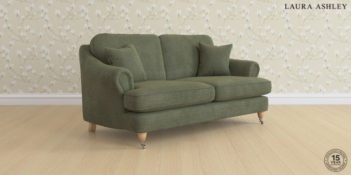 7.0.3 Buy Ambersham by Laura Ashley 3 Seater Small Sofa Edwin Chenille Hedgerow Green Low Chrome Castor - Light Oak from the Next UK online shop Click here to use our accessible website