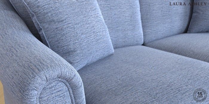 7.0.3 Buy Ambersham by Laura Ashley 3 Seater Small Sofa Edwin Chenille Seaspray Blue Low Brass Castor - Teak from the Next UK online shop Click here to use our accessible website