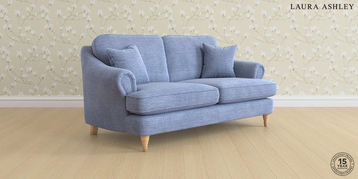 7.0.3 Buy Ambersham by Laura Ashley 3 Seater Small Sofa Edwin Chenille Seaspray Blue Low Turned - Light Oak from the Next UK online shop Click here to use our accessible website