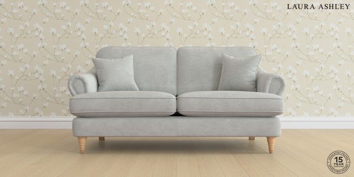 7.0.3 Buy Ambersham by Laura Ashley 3 Seater Small Sofa Edwin Chenille Silver Grey Low Turned - Light Oak from the Next UK online shop Click here to use our accessible website