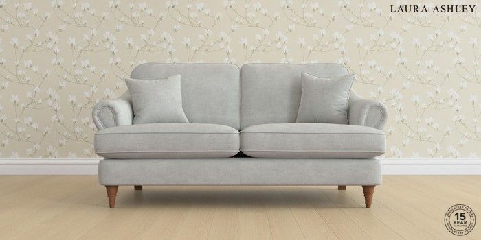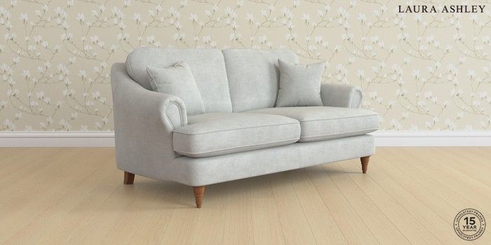 7.0.3 Buy Ambersham by Laura Ashley 3 Seater Small Sofa Edwin Chenille Silver Grey Low Turned - Teak from the Next UK online shop Click here to use our accessible website