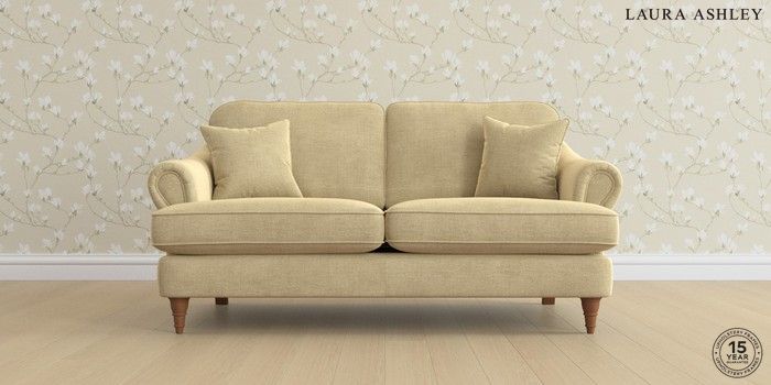 7.0.3 Buy Ambersham by Laura Ashley 3 Seater Small Sofa Edwin Chenille Truffle Natural Low Turned - Teak from the Next UK online shop Click here to use our accessible website
