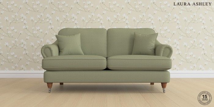 7.0.3 Buy Ambersham by Laura Ashley 3 Seater Small Sofa Edwin Herringbone Hedgerow Green Low Chrome Castor - Teak from the Next UK online shop Click here to use our accessible website