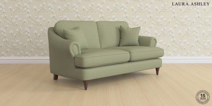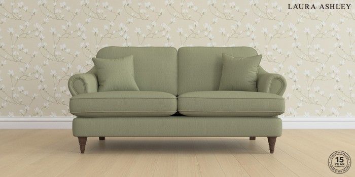 7.0.3 Buy Ambersham by Laura Ashley 3 Seater Small Sofa Edwin Herringbone Hedgerow Green Low Turned - Chestnut from the Next UK online shop Click here to use our accessible website