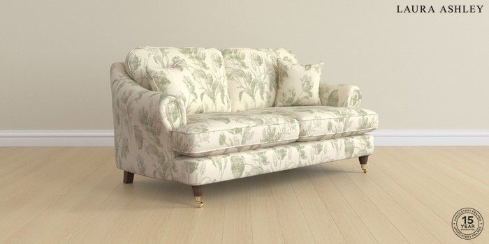 7.0.3 Buy Ambersham by Laura Ashley 3 Seater Small Sofa Gosford Weave Sage Green Low Brass Castor - Chestnut from the Next UK online shop Click here to use our accessible website