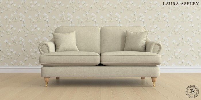 7.0.3 Buy Ambersham by Laura Ashley 3 Seater Small Sofa Kinsham Natural Low Brass Castor - Light Oak from the Next UK online shop Click here to use our accessible website