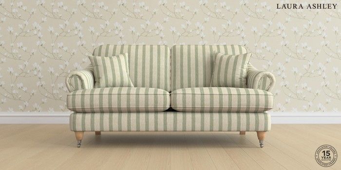 7.0.3 Buy Ambersham by Laura Ashley 3 Seater Small Sofa Kinsham Stripe Hedgerow Green Low Chrome Castor - Light Oak from the Next UK online shop Click here to use our accessible website