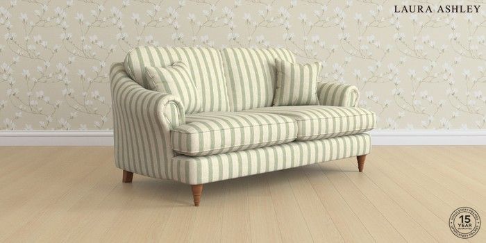 7.0.3 Buy Ambersham by Laura Ashley 3 Seater Small Sofa Kinsham Stripe Hedgerow Green Low Turned - Teak from the Next UK online shop Click here to use our accessible website