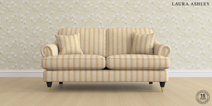 7.0.3 Buy Ambersham by Laura Ashley 3 Seater Small Sofa Kinsham Stripe Ochre Yellow Low Brass Castor - Black from the Next UK online shop Click here to use our accessible website