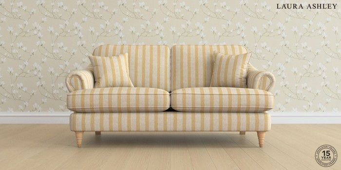 7.0.3 Buy Ambersham by Laura Ashley 3 Seater Small Sofa Kinsham Stripe Ochre Yellow Low Turned - Light Oak from the Next UK online shop Click here to use our accessible website