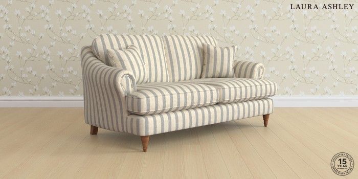 7.0.3 Buy Ambersham by Laura Ashley 3 Seater Small Sofa Kinsham Stripe Seaspray Blue Low Turned - Teak from the Next UK online shop Click here to use our accessible website