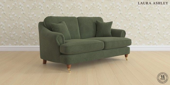 7.0.3 Buy Ambersham by Laura Ashley 3 Seater Small Sofa Lundar Chenille Ivy Green Low Brass Castor - Teak from the Next UK online shop Click here to use our accessible website