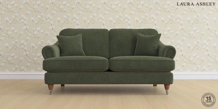 7.0.3 Buy Ambersham by Laura Ashley 3 Seater Small Sofa Lundar Chenille Ivy Green Low Chrome Castor - Teak from the Next UK online shop Click here to use our accessible website