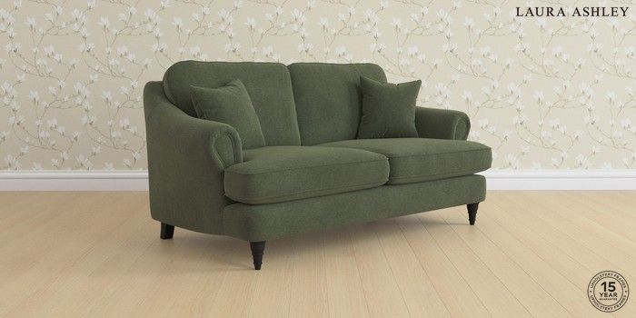 7.0.3 Buy Ambersham by Laura Ashley 3 Seater Small Sofa Lundar Chenille Ivy Green Low Turned - Black from the Next UK online shop Click here to use our accessible website