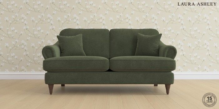 7.0.3 Buy Ambersham by Laura Ashley 3 Seater Small Sofa Lundar Chenille Ivy Green Low Turned - Chestnut from the Next UK online shop Click here to use our accessible website