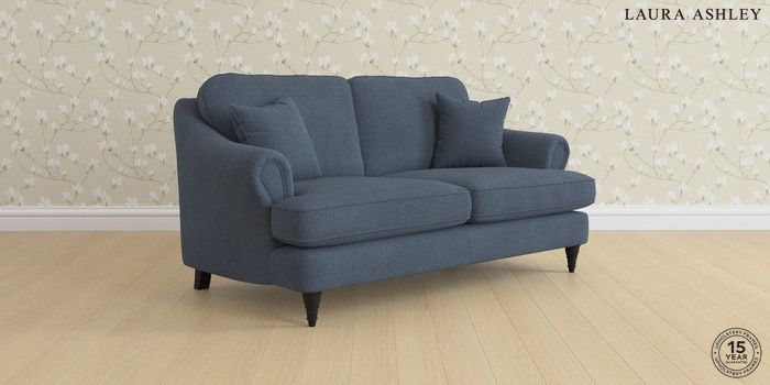7.0.3 Buy Ambersham by Laura Ashley 3 Seater Small Sofa Lundar Chenille Navy Blue Low Turned - Black from the Next UK online shop Click here to use our accessible website