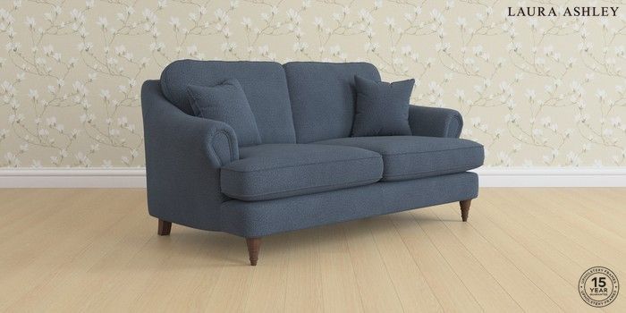 7.0.3 Buy Ambersham by Laura Ashley 3 Seater Small Sofa Lundar Chenille Navy Blue Low Turned - Chestnut from the Next UK online shop Click here to use our accessible website