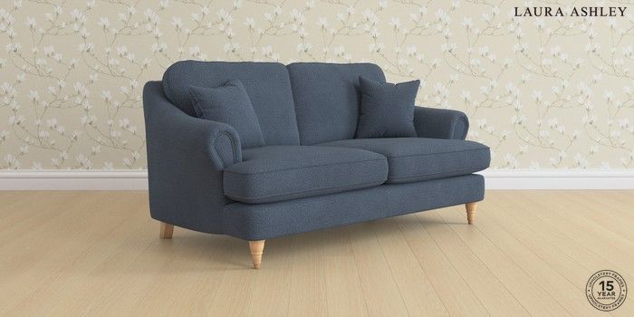 7.0.3 Buy Ambersham by Laura Ashley 3 Seater Small Sofa Lundar Chenille Navy Blue Low Turned - Light Oak from the Next UK online shop Click here to use our accessible website