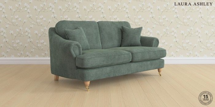 7.0.3 Buy Ambersham by Laura Ashley 3 Seater Small Sofa Nantmor Fern Green Low Brass Castor - Light Oak from the Next UK online shop Click here to use our accessible website