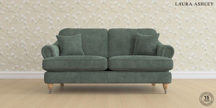 7.0.3 Buy Ambersham by Laura Ashley 3 Seater Small Sofa Nantmor Fern Green Low Chrome Castor - Light Oak from the Next UK online shop Click here to use our accessible website
