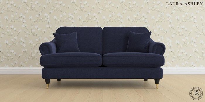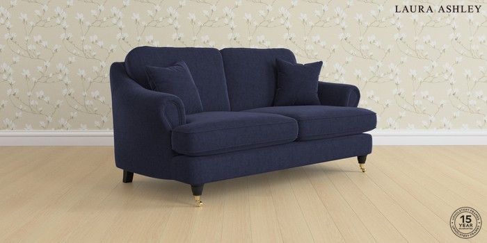 7.0.3 Buy Ambersham by Laura Ashley 3 Seater Small Sofa Nantmor Midnight Navy Low Brass Castor - Black from the Next UK online shop Click here to use our accessible website