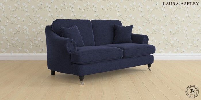 7.0.3 Buy Ambersham by Laura Ashley 3 Seater Small Sofa Nantmor Midnight Navy Low Chrome Castor - Black from the Next UK online shop Click here to use our accessible website
