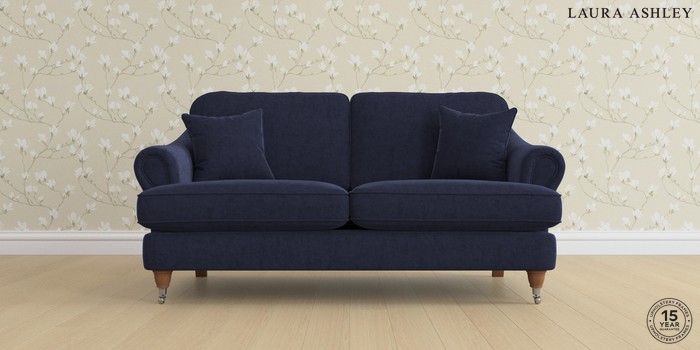 7.0.3 Buy Ambersham by Laura Ashley 3 Seater Small Sofa Nantmor Midnight Navy Low Chrome Castor - Teak from the Next UK online shop Click here to use our accessible website
