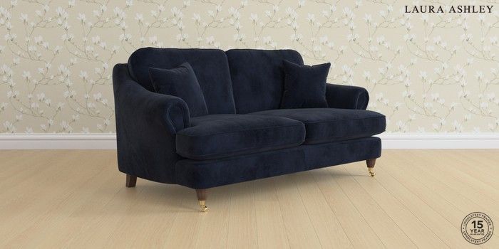7.0.3 Buy Ambersham by Laura Ashley 3 Seater Small Sofa Orla Midnight Navy Low Brass Castor - Chestnut from the Next UK online shop Click here to use our accessible website