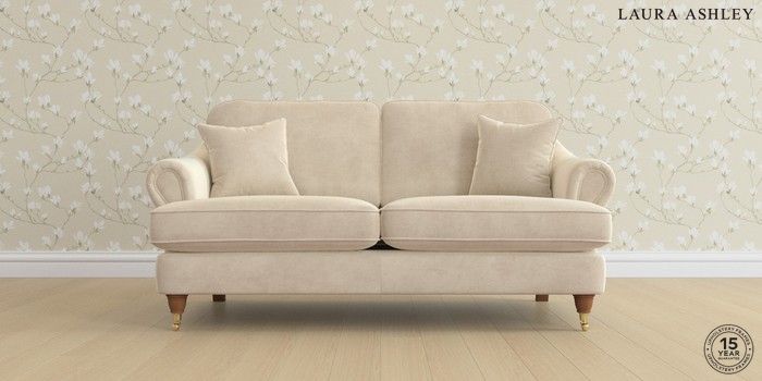 7.0.3 Buy Ambersham by Laura Ashley 3 Seater Small Sofa Orla Oyster Natural Low Brass Castor - Teak from the Next UK online shop Click here to use our accessible website