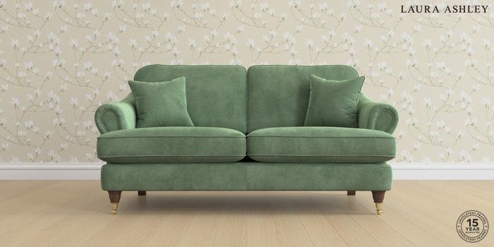 7.0.3 Buy Ambersham by Laura Ashley 3 Seater Small Sofa Orla Pale Hedgerow Green Low Brass Castor - Chestnut from the Next UK online shop Click here to use our accessible website