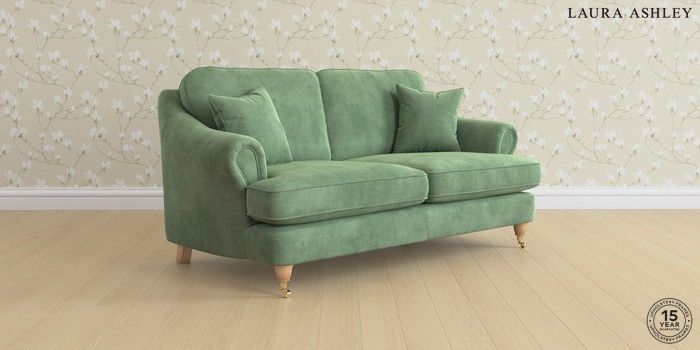 7.0.3 Buy Ambersham by Laura Ashley 3 Seater Small Sofa Orla Pale Hedgerow Green Low Brass Castor - Light Oak from the Next UK online shop Click here to use our accessible website