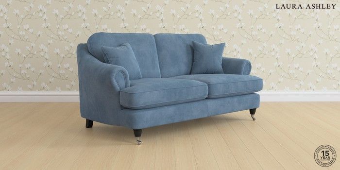 7.0.3 Buy Ambersham by Laura Ashley 3 Seater Small Sofa Orla Seaspray Blue Low Chrome Castor - Black from the Next UK online shop Click here to use our accessible website