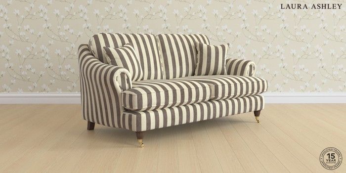 7.0.3 Buy Ambersham by Laura Ashley 3 Seater Small Sofa Orla Stripe Dark Truffle Natural Low Brass Castor - Chestnut from the Next UK online shop Click here to use our accessible website